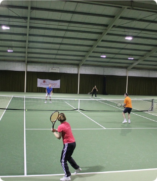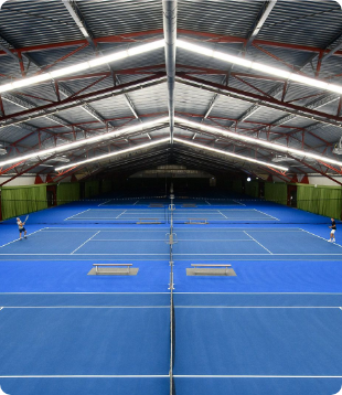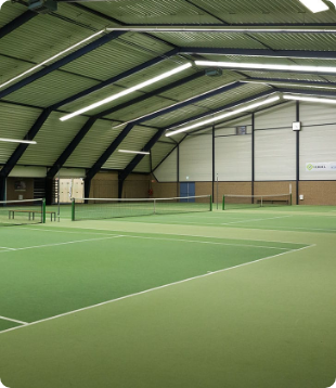 De tennishal beschikt over twee easy-clay gravelbanen met nagenoeg dezelfde speeleigenschappen als gravel.